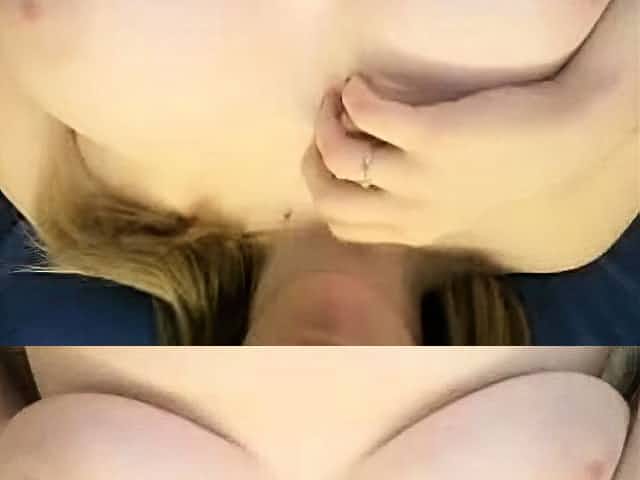Fat blonde bitch sucks and rides on her younger lover's schlong