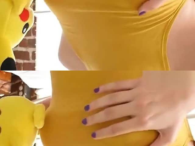 Purple hair cosplay teen sucks neighbors fat dick