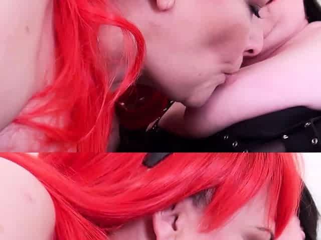 Redhead 19 year old slut fucked in a threesome by fat studs