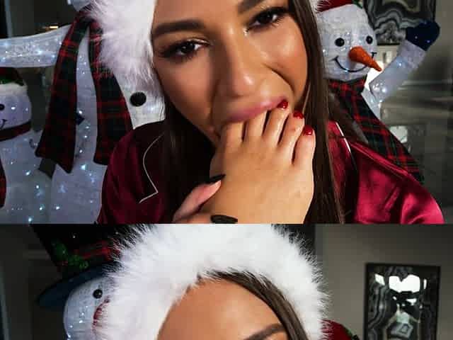 Laura XXX model 2021 footjob and tugjob on pink nylon until this chab cums
