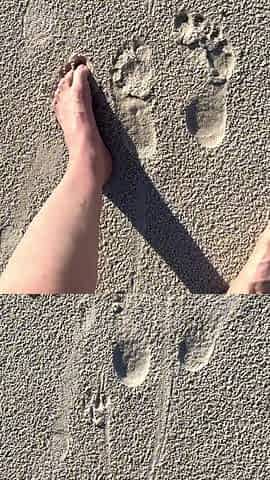 Comparing Size 16 Feet to Sand Prints at the Beach