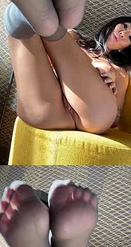 Hot teen in cuban nylons pokes her feet in your face