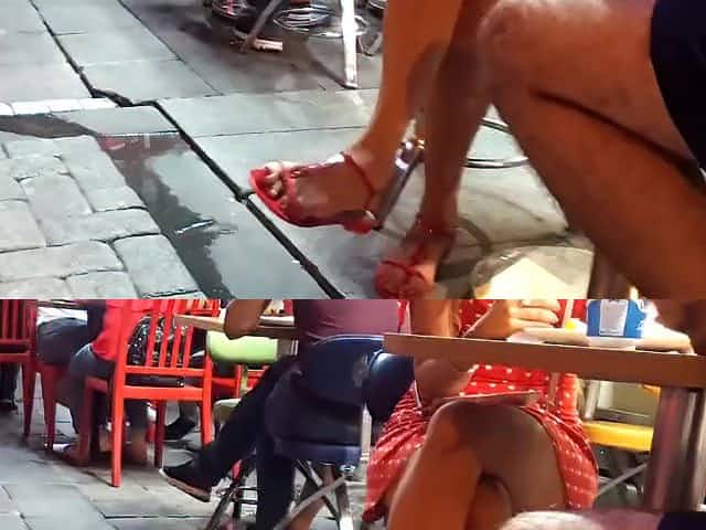 her Sexy sitting upskirt, sexy legs feets toes