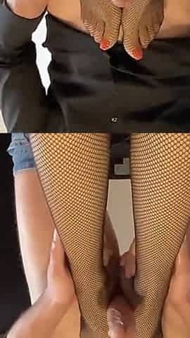 Adeline Murphy Is a Cheating Wife in Black Fishnet Stockings. Footjob POV Cum Onto Feet