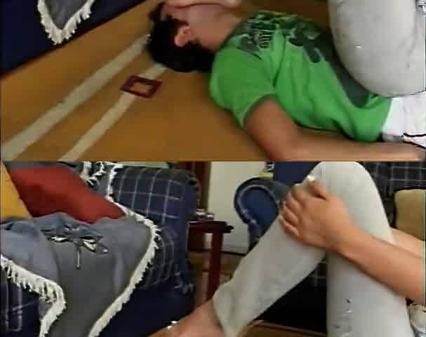 Leather boots no socks feet sniffing