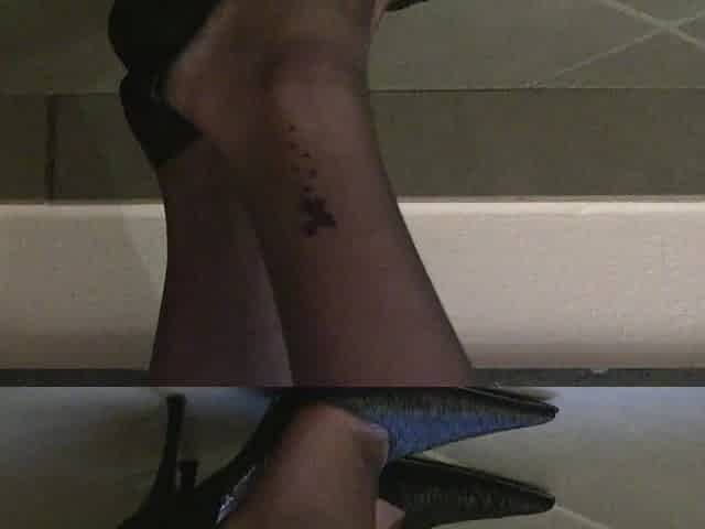 Abby Anna flaunts her sexy legs in fishnets and high heels with a school girl skirt