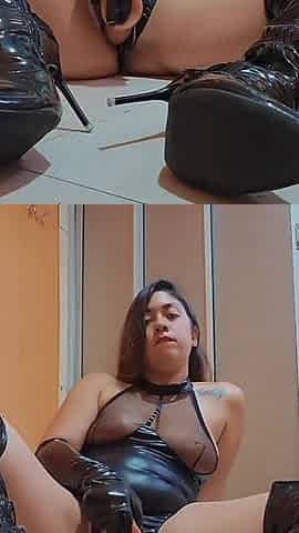 Latex Boots Fetish - Goddess Noemileon Playing with Dildo Wearing Latex Gloves & Boots and Licked off All Cum From Boots