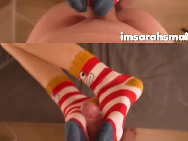 Fluffy ankle socks removed - toe sniffing - foot licking - giant cum on soles