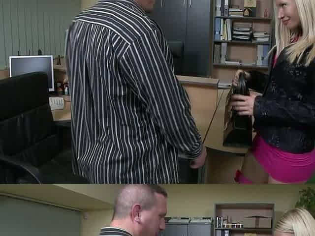 Blonde Secretary Sucks and Rides Huge Cock Hard