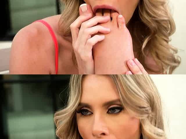 Blonde in stockings hot foot fetish and pussy pounding