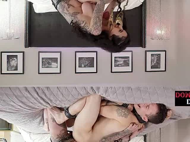 Tattooed prodomme pegging her lover