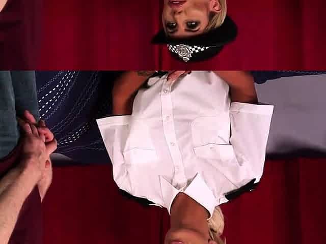 Masked man enjoys being pegged by naughty blonde Ella Jay