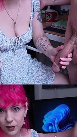 Busty femdom cock whore jerks dick
