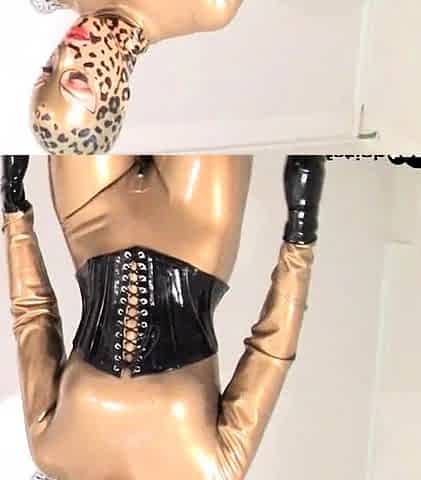 Electro bdsm slave and fetish latex big titted domina