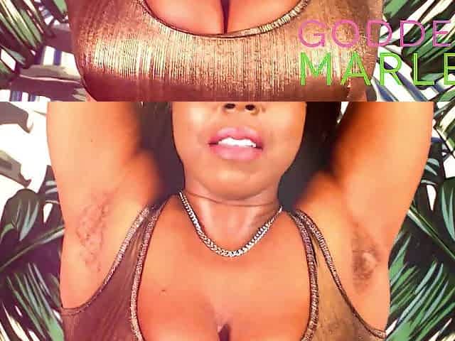 Black Domina Marley Seduces in Bronze Bikini and Hirsute Armpits