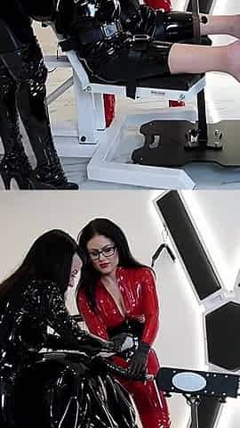 Pegging trio in latex with Mistress Lunatika, Empress Ming