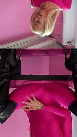 Shiny Catsuit Domme in Boots Orders You to Stroke on Command