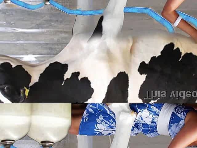 Femboy's milking and flowing cumshot in front of girl - 4K