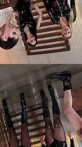 Femdom fetish mistresses fuck bdsm loser with strapon