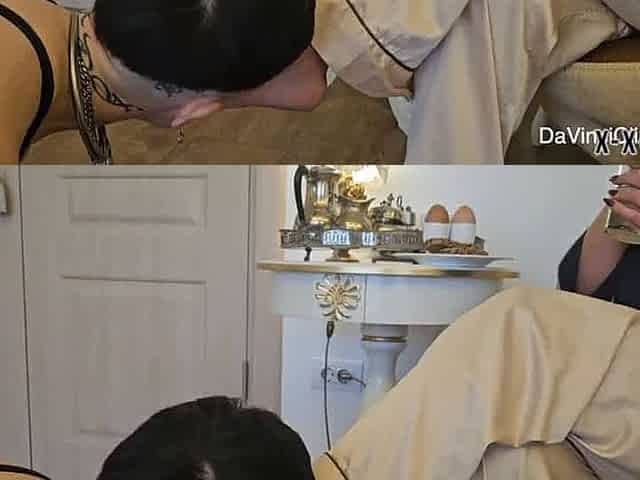 Sub Worships Mistress Feet, Gets Flogged And Drilled With Ding-dong