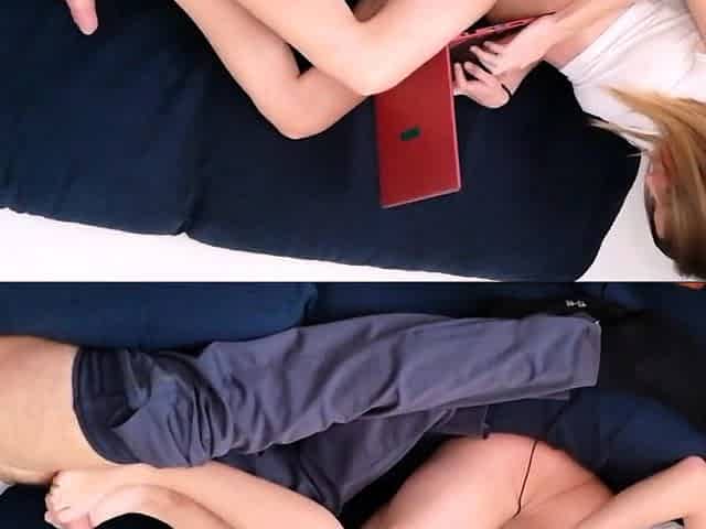 Blonde Babe Gives a Footjob and Handjob POV