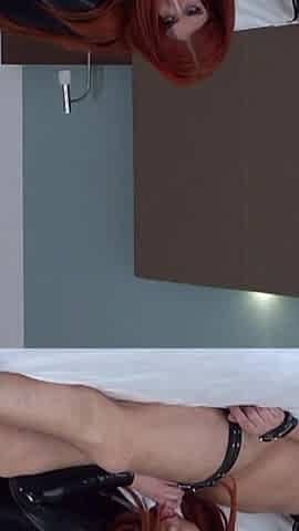 Femdom Rough Fun in Latex and High Heels with Strapon.