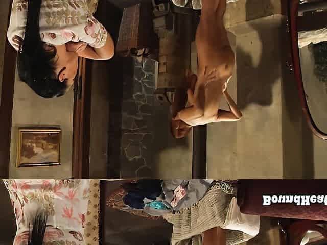 Curvy Large Titties Lesbo Serf Giving a kiss With Madame Untill Climax