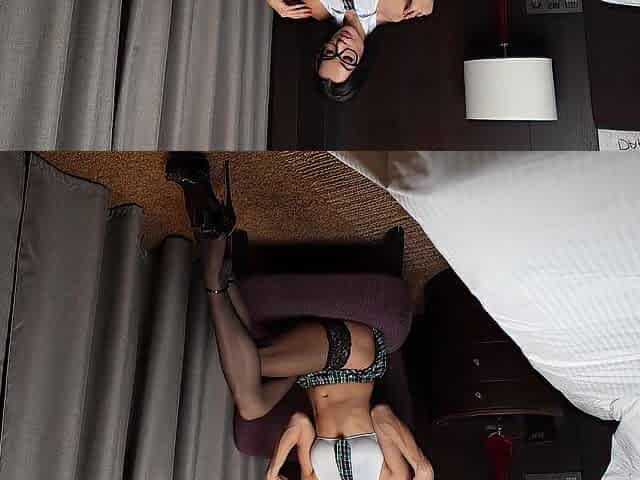 schoolgirl with lengthy legs and nylons