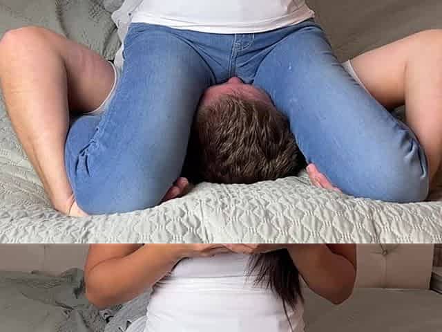 Wrestling Hold Cruel Facesitting in Jeans Locked in Sgpin