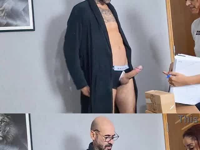 Sexy secretary let's her boss bangs her booty whilst his wife watches