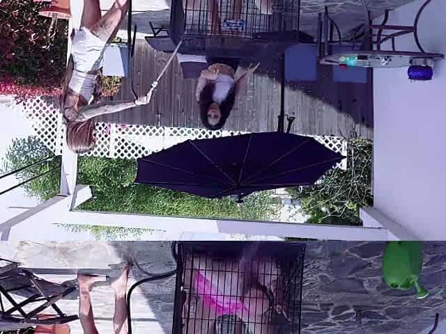 Anal games in the kitchen. Goddess Nika bangs her serf's booty with a cucumber.