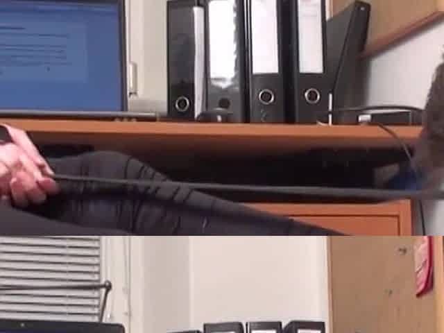 Masseuse massages his back, then his ramrod, and begins pegg, this guy falls on the ground