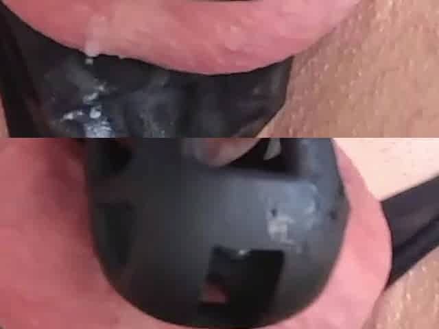 Spitting and Licking a Cock Locked in a Chastity Cage