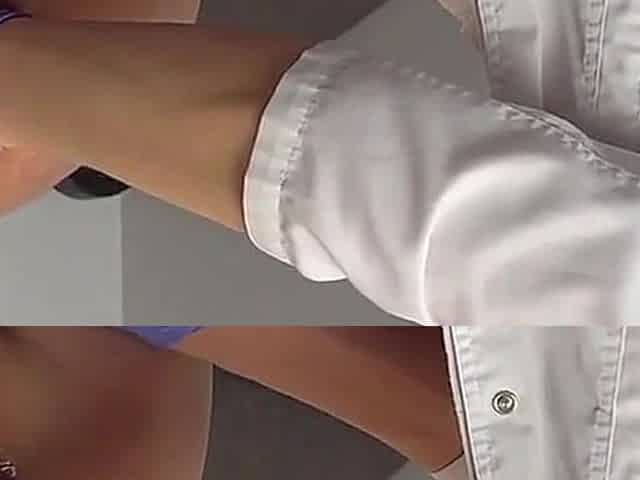 Femdom CFNM HJ mature jerks knob between her thighs