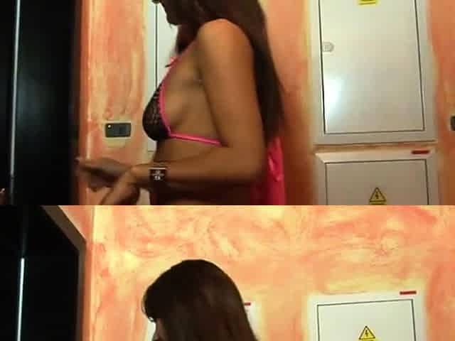 Hot Brunette Chick in a See through Halloween Costume teases a Big Penis under The Towel and plays