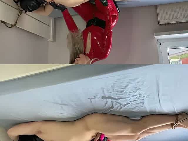 Hands fastened, legs wide – that babe supplicates like a dominatrix
