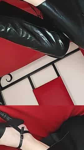 Femdom Anuskatzz dominates Trans Hotty with her Latex bitch goddess allies with Belt on and Sex tool