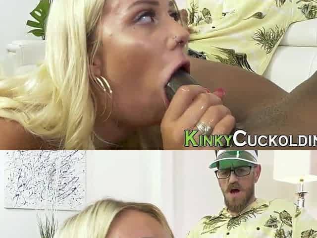 Deep throating cuckolding blonde babe