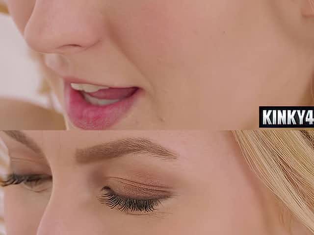 Blonde mistress blows lover's cock and let him cum on her husband's face