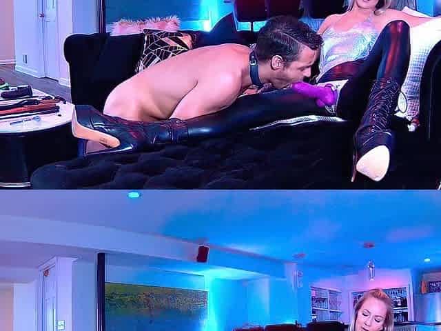 Femdom Fetish Blonde Makes Cuckold Lick Cumshot