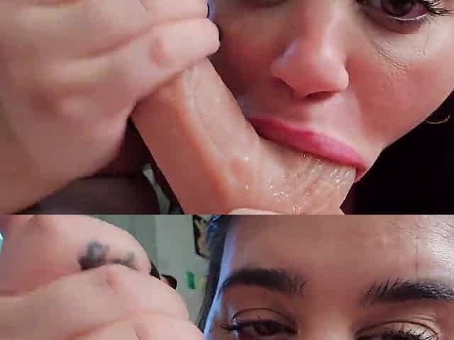 Cuckold Private Cam Worship - Goddess in Thick Eyeglasses, Wet Lips and Tongue Deep-throating Dildo While Teasing Tits for Cuck