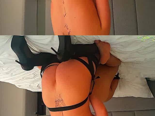 Pegging my spouse hard. This chab groans and flowslike a whore. Full episode on Fansly