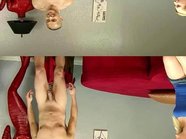 "Ass licking in chastity with ballbusting"