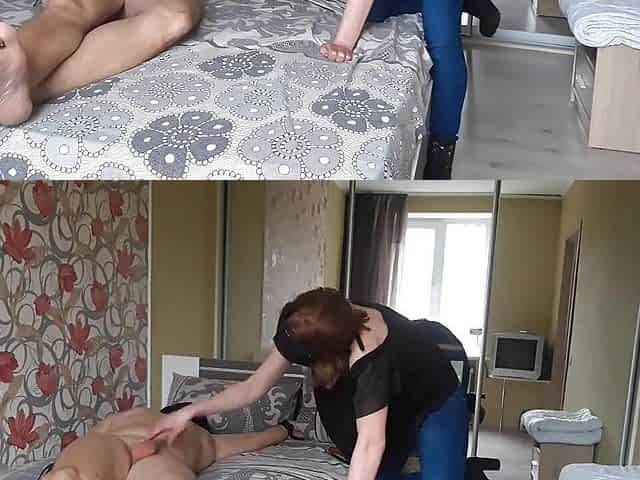 "Mary Plays with Her Slave on The Bad, Riding Him, Sitting on His Face and Milking"