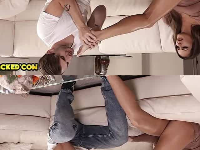 Cuckold husband watches nymphomaniac slut fuck after licking feet