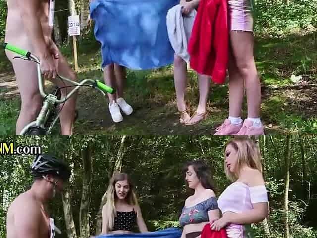 21yo CFNM sluts sucking and tugging guy cock in 3some