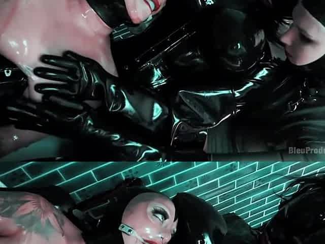 Les sub in latex 3some gaping her bigass after gets rimmed