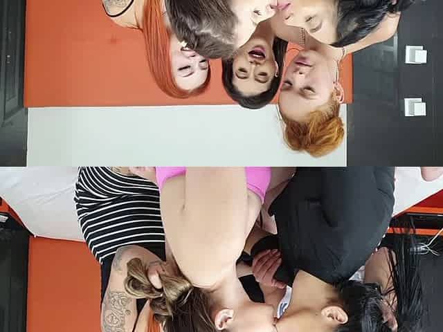 Spit Kisses Gang Bang - 3 Domina Vs 2 Slave and Litres of Spit