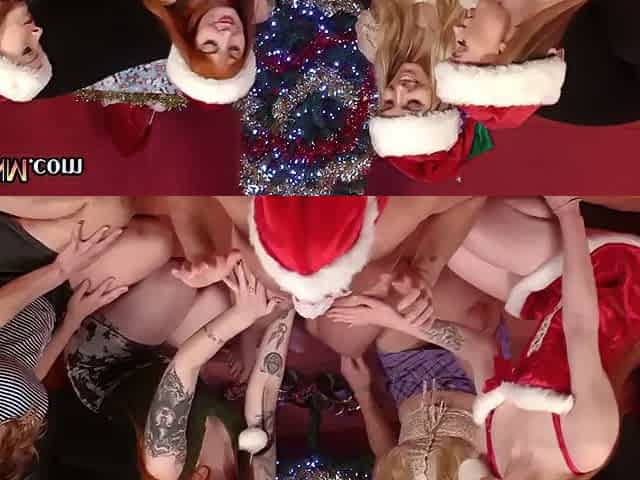 Femdom CFNM babes hump 3some orgy sissy with strapon toy