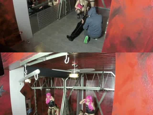 21 year old woman CFNM ties sissy to group strapon